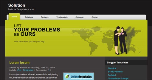 Solution is a two column free Premium Blogger template suitable for business-related blog.